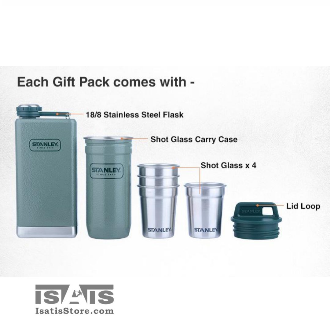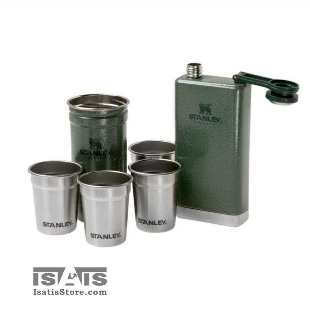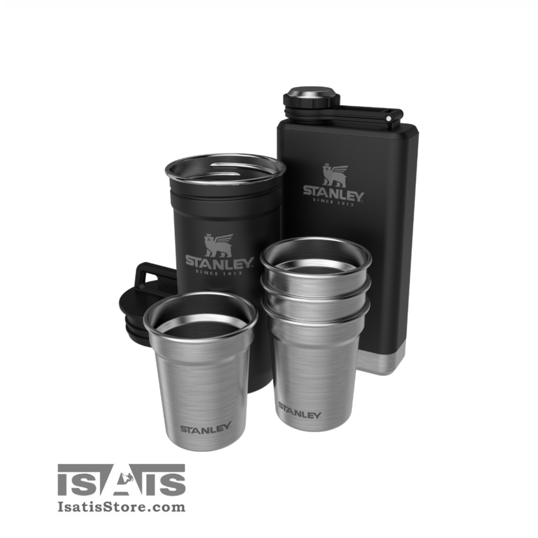 ست شات (استکان) 4 عددی و قمقمه 230 میل سری ادونچر استنلی زیر نظر شرکت آمریکایی استنلی با بالاترین کیفیت در کشور چین تولید می شود.