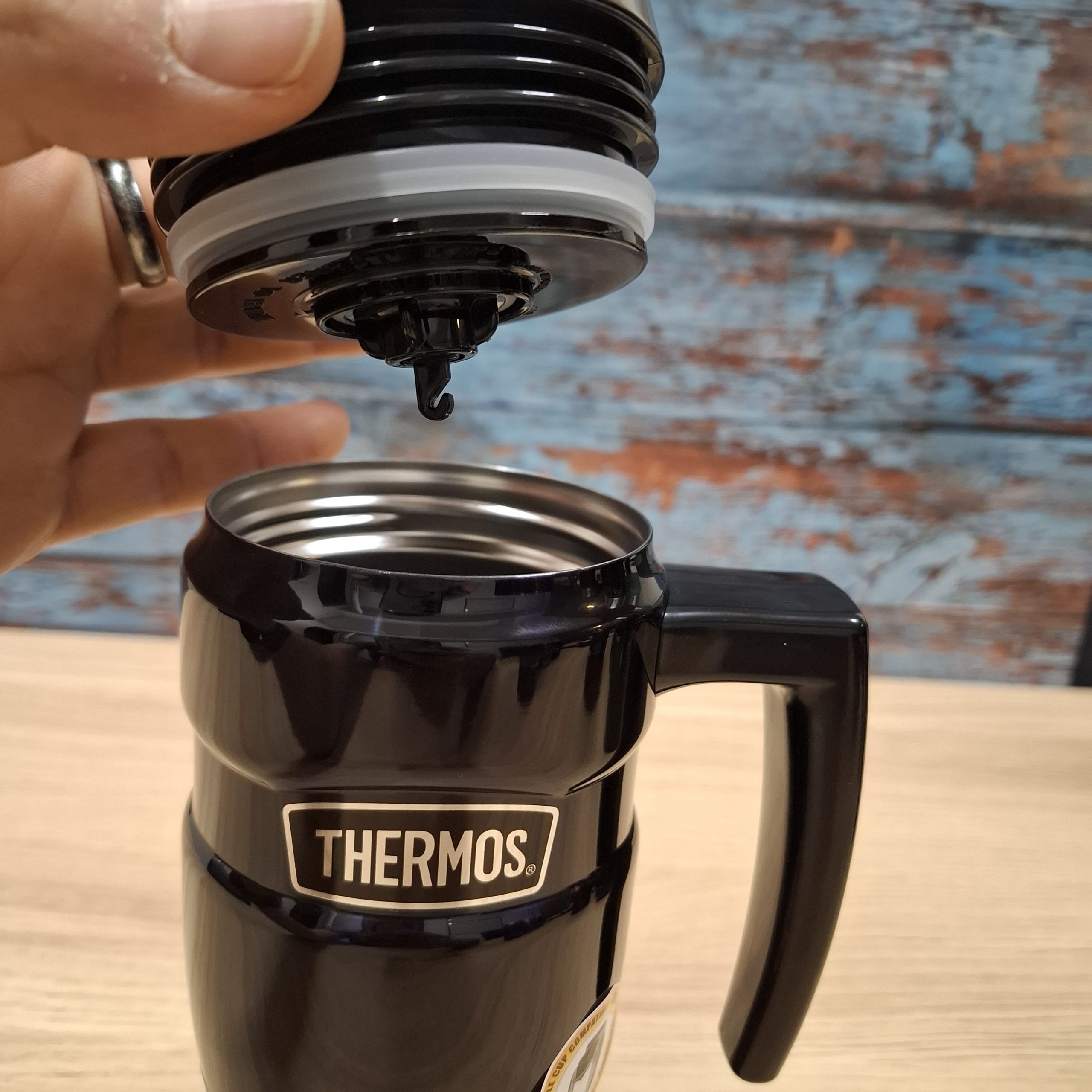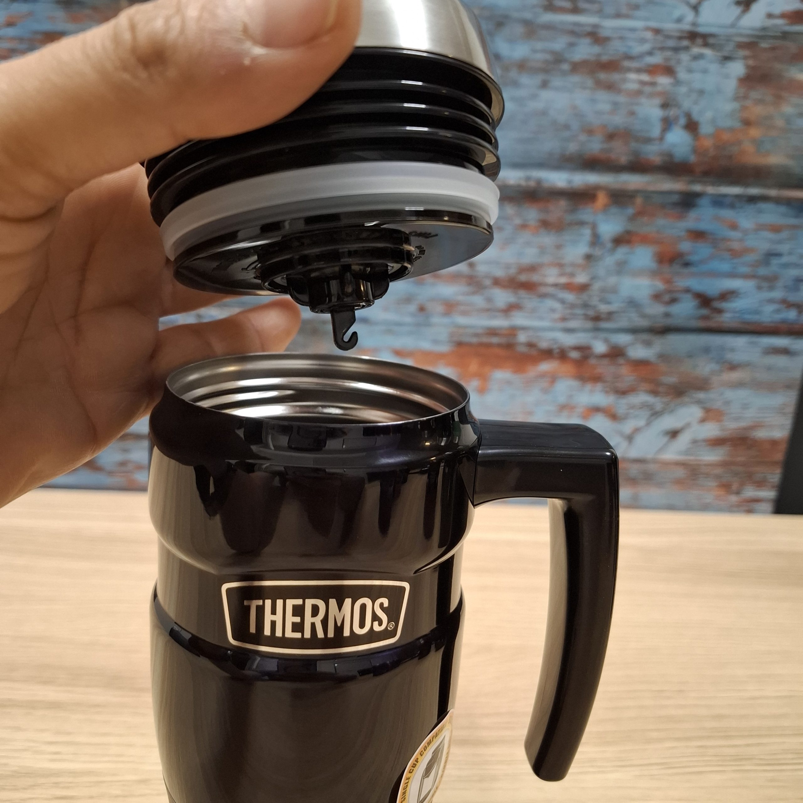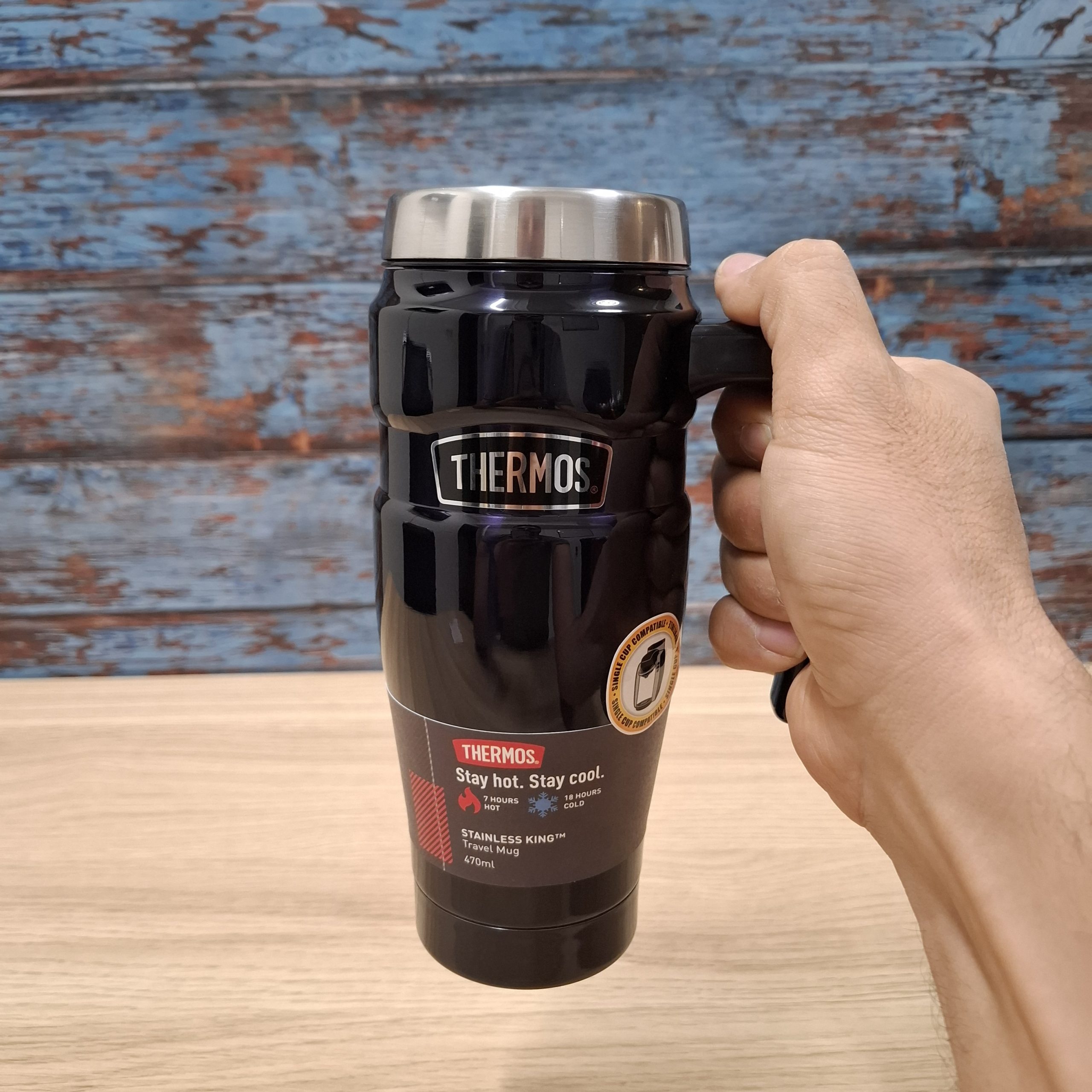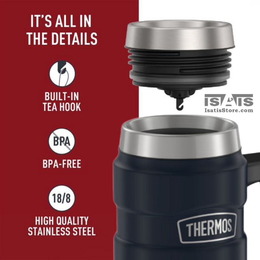 ماگ تراول نیم لیتری کینگ دسته دار ترموس زیر نظر شرکت آلمانی ترموس با بالاترین کیفیت و استاندارد های آمریکایی در کشور چین تولید می شود.