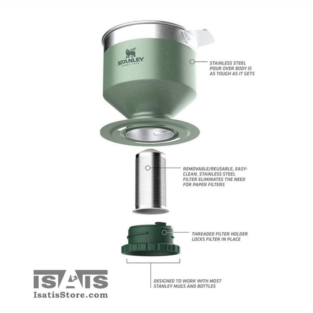 قهوه ساز استنلی مدل CLASSIC PERFECT-BREW POUR OVER، با طراحی کلاسیک و منحصر به فرد ، مناسب طبیعت گردی و کمپینگ و… می باشد. برای عاشقان قهوه، کمکس استنلی بسیار عالی است . کمکس استنلی دارای یک فیلتر فلزی برای صاف کردن قهوه است که بدون نیاز به فیلتر های یکبار مصرف می توانید از آن استفاده کنید، آن را بردارید و دوباره استفاده کنید. کافی است با قاشق قهوه متوسط آسیاب شده مورد علاقه خود را بریزید، آن را با آب داغ پر کنید و اجازه دهید که قهوه شما صاف شود. قابل استفاده با اکثر لیوان ها و بطری و ماگ های استنلی!
